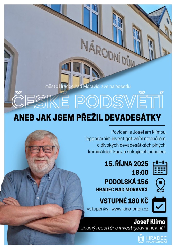 18.00 Kino Orion Hradec nad Moravicí: Josef Klíma - České podsvětí (beseda)