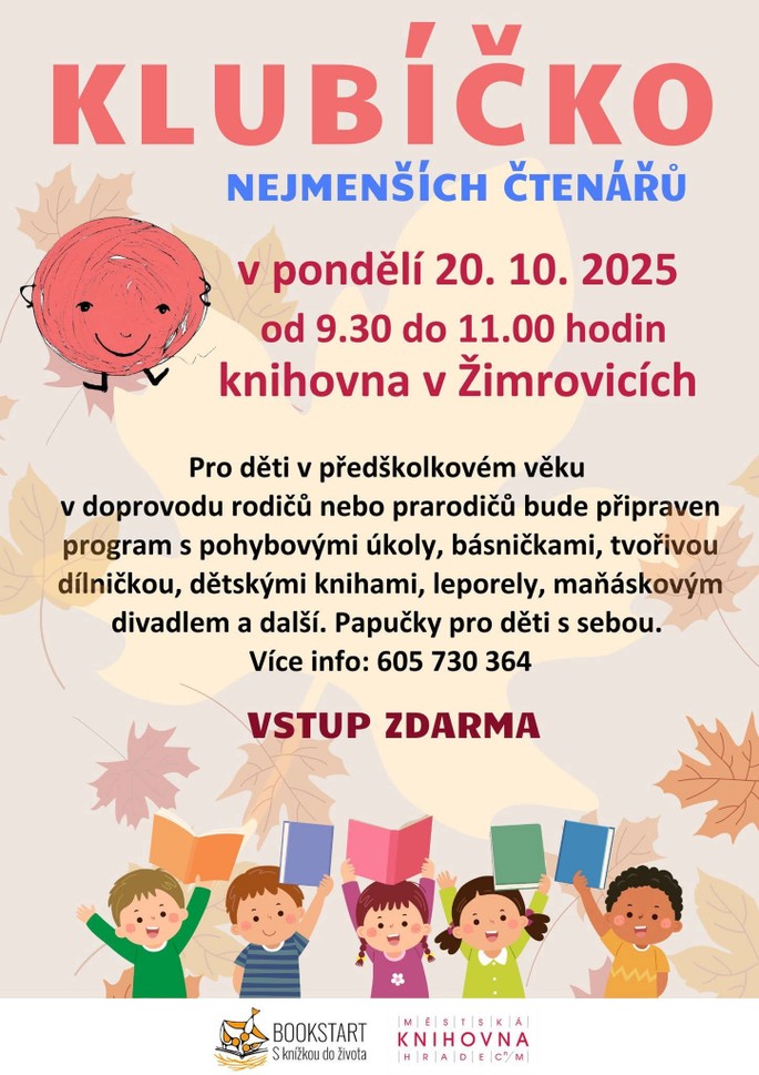 pondělí 20.10.202509.30 Místní knihovna Žimrovice: Klubíčko nejmenších čtenářů v Žimrovicích