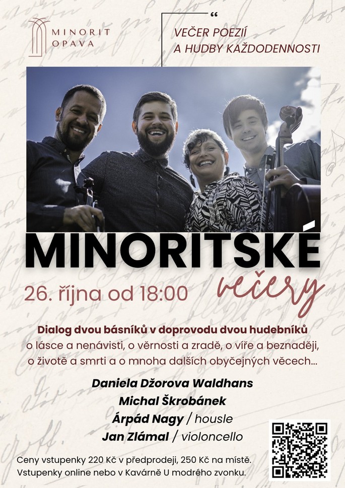 18.00 Minorit Opava: Minoritské večery - Dialog dvou básníků v doprovodu dvou hudebníků