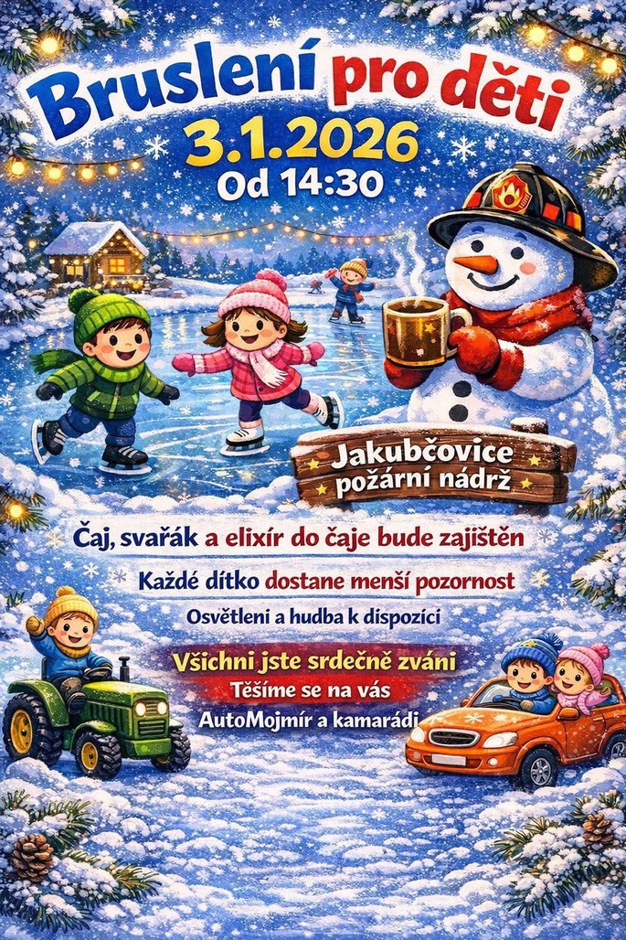 14.30 Požární nádrž Jakubčovice: Bruslení pro děti