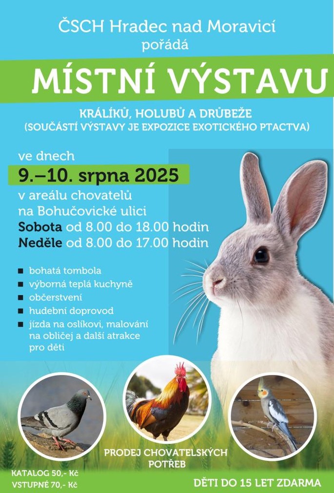 neděle 10.8.202508.00 ČSCH Hradec nad Moravicí / areál chovatelů Hradec nad Moravicí: Výstava chovatelů (do 17.00 hodin)