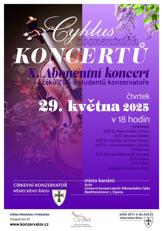 18.00 Církevní konzervatoř Německého řádu / aula školy: Koncert žáků ZUŠ a studentů konzervatoře