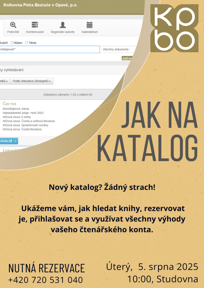 úterý 5.8.202510.00 Knihovna Petra Bezruče v Opavě: Jak na katalog (workshop)