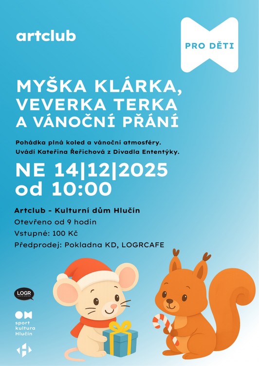 ARTCLUB DĚTEM - MYŠKA KLÁRKA, VEVERKA TERKA A VÁNOČNÍ PŘÁNÍ