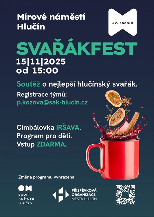 Podzim patří vůni svařeného vína, koření a příjemné atmosféře. V sobotu 15. listopadu se můžete těšit už na čtvrtý ročník hlučínského SvařákFestu, který přinese nejen možnost ochutnat různé podoby tohoto oblíbeného vinného nápoje, ale také soutěž O nejlepší hlučínský svařák. Návštěvníky čeká hudební doprovod cimbálové muziky Iršava, pestrý program pro děti a přátelské setkání u hrnku voňavého svařáku.
