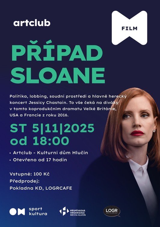Ve středu 5. listopadu 2025 nabídne Artclub v Kulturním domě Hlučín další filmový večer, tentokrát s napínavým politickým dramatem Případ Sloane (Miss Sloane). Tento koprodukční film Velké Británie, USA a Francie z roku 2016 představí divákům výjimečný výkon herečky Jessicy Chastain, která v hlavní roli exceluje jako brilantní, chladnokrevná či neústupná washingtonská lobbistka. Úvodní slovo k projekci pronese filmový odborník Martin Novosad, který divákům přiblíží kontext filmu i jeho hlavní témata.