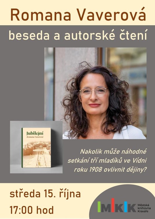 Městská knihovna Kravaře vás zve na autorské čtení se spisovatelskou Romanou Vaverovou, kde představí svůj poslední román Jubilejní.