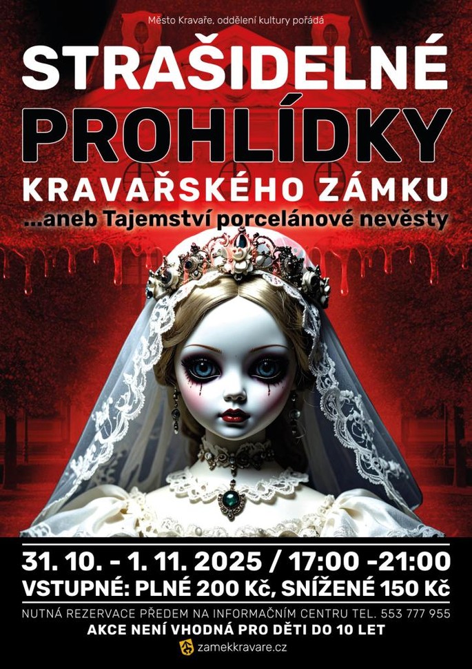 17.00 Město Kravaře / zámek Kravaře: Strašidelné prohlídky aneb tajemství porcelánové nevěsty (do 21.00 hodin)